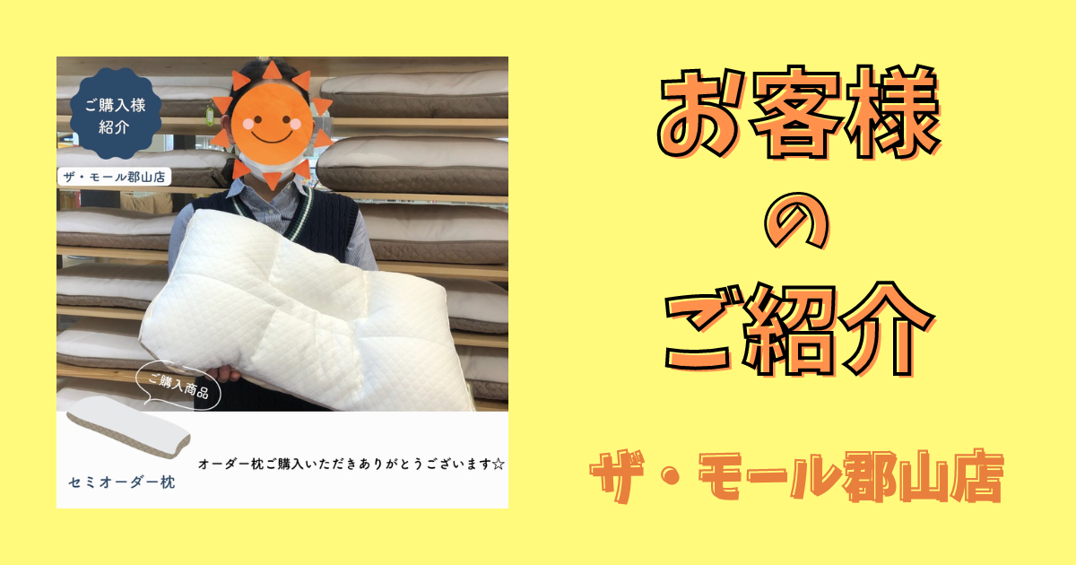 ホームお客様の声【ザ・モール郡山店】ご購入者様の紹介 2023.03.01 オーダーメイド枕 【ザ・モール郡山店】ご購入者様の紹介 ザ・モール郡山店 A.H様 オーダー枕ご購入いただきありがとうございます☆ 少しでも眠りの質を上げるお手伝いをさせていただけましたら幸いです☘ 次回のメンテナンスもお待ちしております✨ 次の記事 一覧に戻る 前の記事