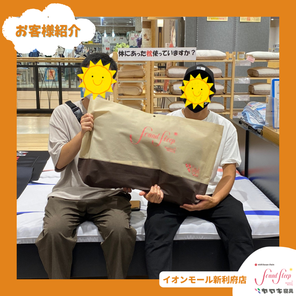 お連れ様からのプレゼントでオーダー枕をお選び頂きました❗️お二人の掛け合い楽しくお話しさせて頂きました😆
